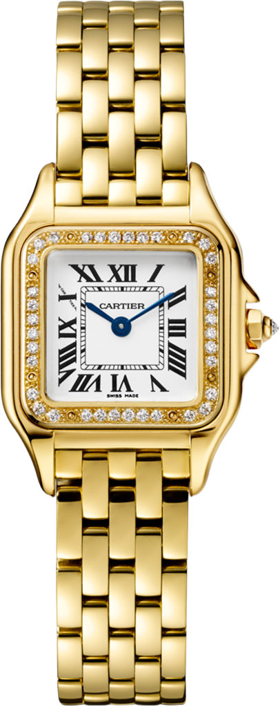 Часы Cartier из коллекции Panthere Secrete De Ladies. Классические женские часы Cartier Panthere Secrete De Ladies 27 WJPN0016 премиального качества (Артикул магазина: CR-0633) оснащены надежным кварцевым механизмом (работает от батареи) калибра Swiss Quartz ETA, в котором реализованы следующие функции: часова и минутка стрелки, а так же максимально простой функционал без усложнений. Квадратный корпус часов цветы желтой золота, имеющий размер 27 мм х 37 мм и высоту 6.5 мм превосходно дополнит образ и украсит запястье своего обладателя. Для изготовления часов Cartier Panthere Secrete De Ladies 27 WJPN0016 предлагаемых в нашем интернет-магазине, применяются нержавеющая сталь 316L высокого качества (Швейцарский стандарт), а так же сапфировое стекло высокой прочности, благодаря чему обеспечивается максимальная защита от сколов и механических повреждений. Отличительной чертой данной модели является белый циферблат, часовые индексы которого обеспечивают римские цифры. Завершает образ браслет из нержавеющей стали цвета желтого золота с фирменной раскладывающейся застежкой Cartier. Водонепроницаемость данной модели составляет 30М (WR30) – допускается минимальное воздействие с водой.Для покупки товара в нашем интернет-магазине выберите понравившийся товар и добавьте его в корзину. Далее перейдите в Корзину и нажмите на «Оформить заказ» или «Быстрый заказ».