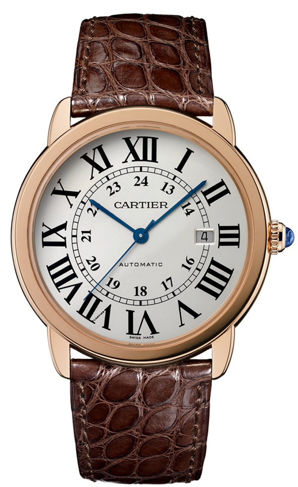 Часы Cartier из коллекции Ronde Louis Cartier. Классические мужские часы Cartier Ronde Louis Cartier 42 W6701009 премиального качества (Артикул магазина: CR-0643) оснащены надежным автоматическим механизмом с автоподзаводом (работает от амплитуды движения руки) калибра MY9015, в котором реализованы следующие функции: часовая, минутная и секундная стрелки, а так же дата. Круглый корпус часов розового цвета, имеющий размер 42 мм и высоту 9.5 мм превосходно дополнит образ и украсит запястье своего обладателя. Для изготовления часов Cartier Ronde Louis Cartier 42 W6701009 предлагаемых в нашем интернет-магазине, применяются нержавеющая сталь 316L высокого качества (Швейцарский стандарт), а так же сапфировое стекло высокой прочности, благодаря чему обеспечивается максимальная защита от сколов и механических повреждений. Отличительной чертой данной модели является серебристый циферблат, часовые индексы которого обеспечивают римские цифры. Завершает образ кожаный ремешок коричневого цвета с фирменной раскладывающейся застежкой Cartier. Водонепроницаемость данной модели составляет 30М (WR30) – допускается минимальное воздействие с водой.Для покупки товара в нашем интернет-магазине выберите понравившийся товар и добавьте его в корзину. Далее перейдите в Корзину и нажмите на «Оформить заказ» или «Быстрый заказ».