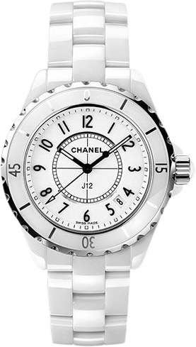 Часы Chanel из коллекции J-12. Классические женские часы Chanel J-12 33 H0968 премиального качества (Артикул магазина: CN-0253) оснащены надежным кварцевым механизмом (работает от батареи) калибра ETA.956.612, в котором реализованы следующие функции: часовая, минутная и секундная стрелки, а так же дата. Круглый корпус часов белого цвета, имеющий размер 33 мм и высоту 11 мм превосходно дополнит образ и украсит запястье своего обладателя. Для изготовления часов Chanel J-12 33 H0968 предлагаемых в нашем интернет-магазине, применяются керамика высокого качества (Швейцарский стандарт), а так же сапфировое стекло высокой прочности, благодаря чему обеспечивается максимальная защита от сколов и механических повреждений. Отличительной чертой данной модели является белый циферблат, часовые индексы которого обеспечивают арабские цифры. Завершает образ керамический браслет белого цвета с фирменной раскладывающейся застежкой Chanel. Водонепроницаемость данной модели составляет 30М (WR30) – допускается минимальное воздействие с водой.Для покупки товара в нашем интернет-магазине выберите понравившийся товар и добавьте его в корзину. Далее перейдите в Корзину и нажмите на «Оформить заказ» или «Быстрый заказ».