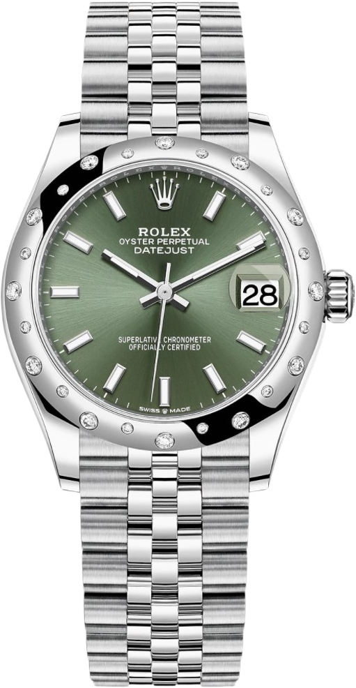 Часы Rolex из коллекции DateJust. Классические женские часы Rolex DateJust 31mm 278344RBR-0020 премиального качества (Артикул магазина: RX-3084) оснащены надежным автоматическим механизмом с автоподзаводом (работает от амплитуды движения руки) калибра ETA2688, в котором реализованы следующие функции: часовая, минутная и секундная стрелки, а так же дата. Круглый корпус часов стального цвета, имеющий размер 31 мм и высоту 12 мм превосходно дополнит образ и украсит запястье своего обладателя. Для изготовления часов Rolex DateJust 31mm 278344RBR-0020 предлагаемых в нашем интернет-магазине, применяются нержавеющая сталь 904L высокого качества (Швейцарский стандарт), а так же сапфировое стекло высокой прочности, благодаря чему обеспечивается максимальная защита от сколов и механических повреждений. Отличительной чертой данной модели является зеленый циферблат, часовые индексы которого обеспечивают часовые метки. Завершает образ браслет из нержавеющей стали стального цвета с фирменной раскладывающейся застежкой Rolex. Водонепроницаемость данной модели составляет 30М (WR30) – допускается минимальное воздействие с водой.Для покупки товара в нашем интернет-магазине выберите понравившийся товар и добавьте его в корзину. Далее перейдите в Корзину и нажмите на «Оформить заказ» или «Быстрый заказ».